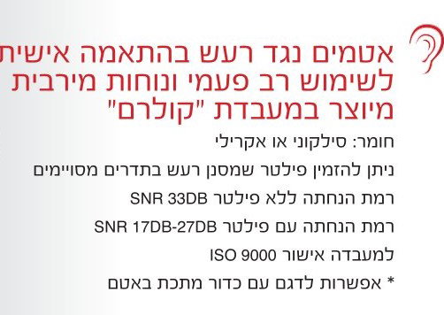 אטמים שמותאמים לעובד בהתאמה אישית, מצריך לקיחת מידה. ניתן לייצר מחומר רך/קשה. מתאים למקומות עבודה רועשים.